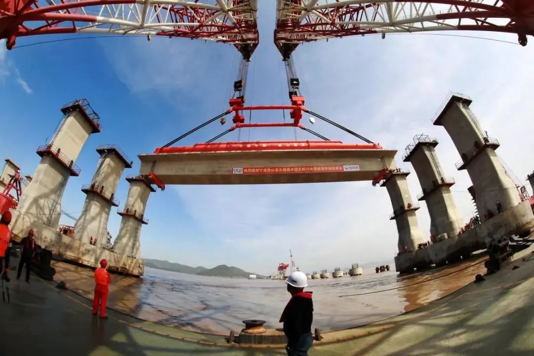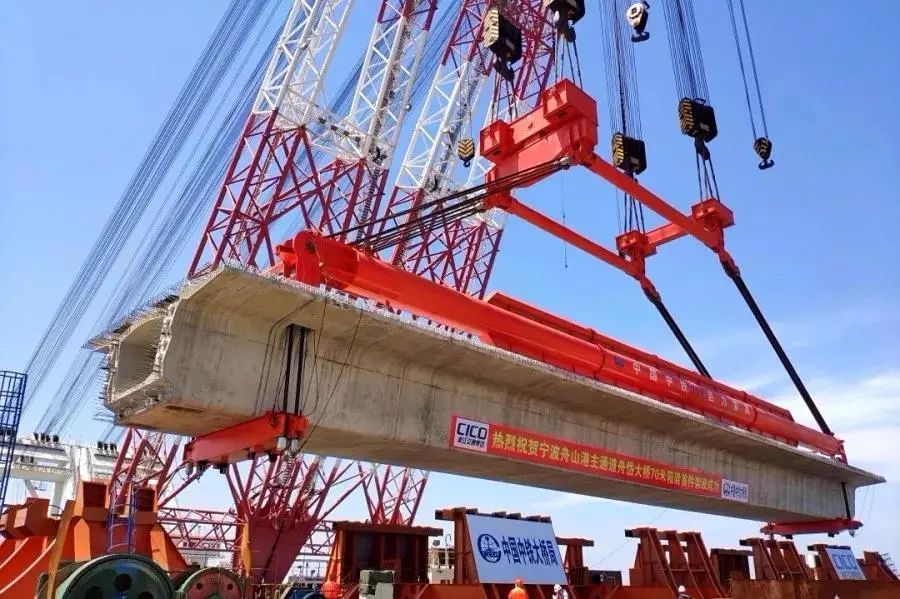 2019年4月18日,寧波舟山港主通道舟岱大橋建設(shè)迎來(lái)激動(dòng)人心的時(shí)刻:長(zhǎng)69米、寬12.55米、重達(dá)1800余噸的“巨無(wú)霸”箱梁安全、精準(zhǔn)地落至大橋NZ24號(hào)和NZ25號(hào)墩上,該項(xiàng)目專用吊具由巨力索具研發(fā)生產(chǎn)。