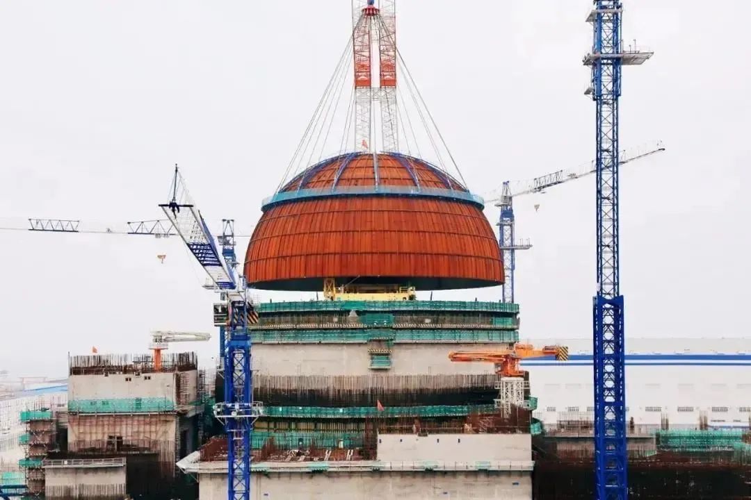 2023年7月,國家能源重點(diǎn)項(xiàng)目——徐大堡核電項(xiàng)目3號機(jī)組順利完成穹頂?shù)跹b,標(biāo)志著該機(jī)組從土建施工高峰全面轉(zhuǎn)入安裝階段。巨力索具為其提供卸扣、環(huán)形吊具、無接頭繩圈、索具螺旋扣、壓制鋼絲繩等定制化吊裝產(chǎn)品,整個(gè)吊裝過程安全、有序、可控。