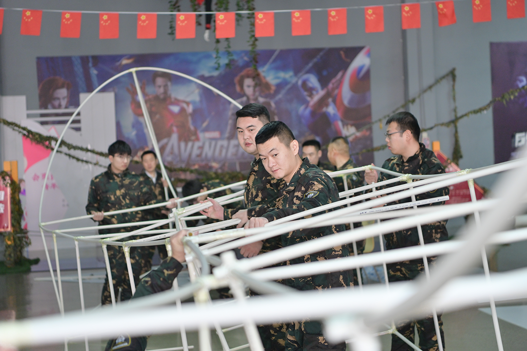 活動開始,教練帶領銷售人員進行熱身游戲,活躍了現場氣氛。隨后通過破冰項目,各戰區員工迅速融入團隊,建立起良好的溝通與協作基礎。員工們被隨機分成若干小組,各小組在規定時間內確定隊名和口號,團隊向心力初步形成。