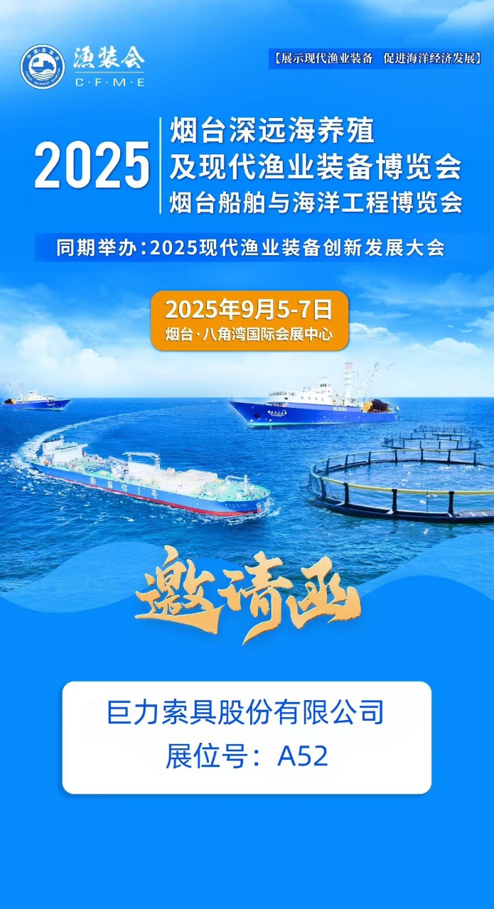 展會邀約 | 巨力索具誠邀您共聚2025煙臺深遠海養殖及現代漁業裝備博覽會