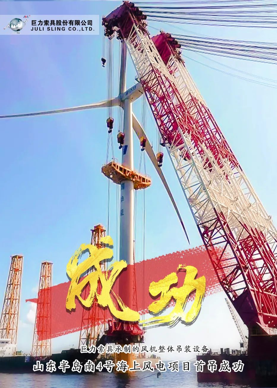 巨力索具承制的風機整體吊裝產品在山東半島南4號海上風電項目首吊成功
