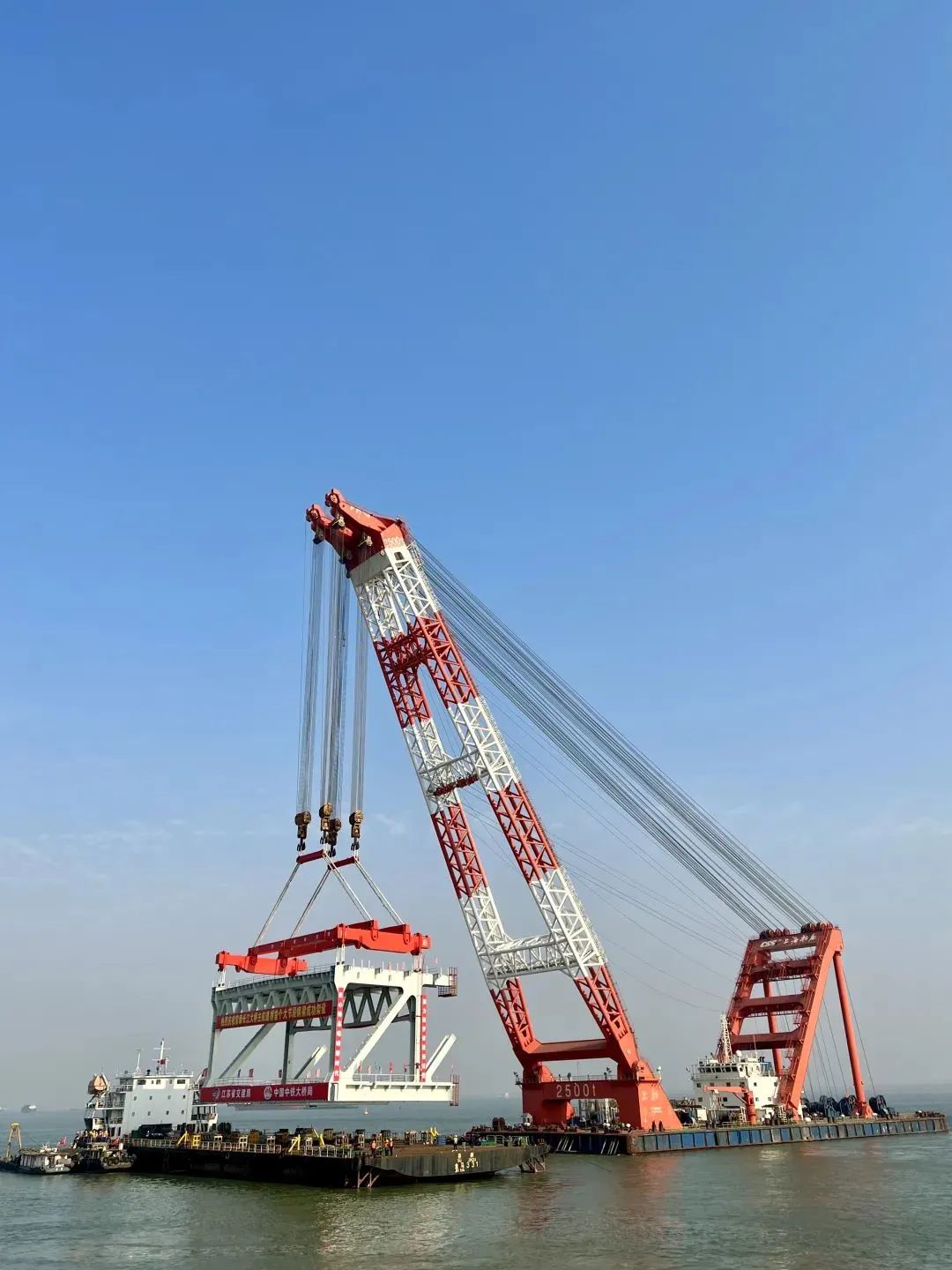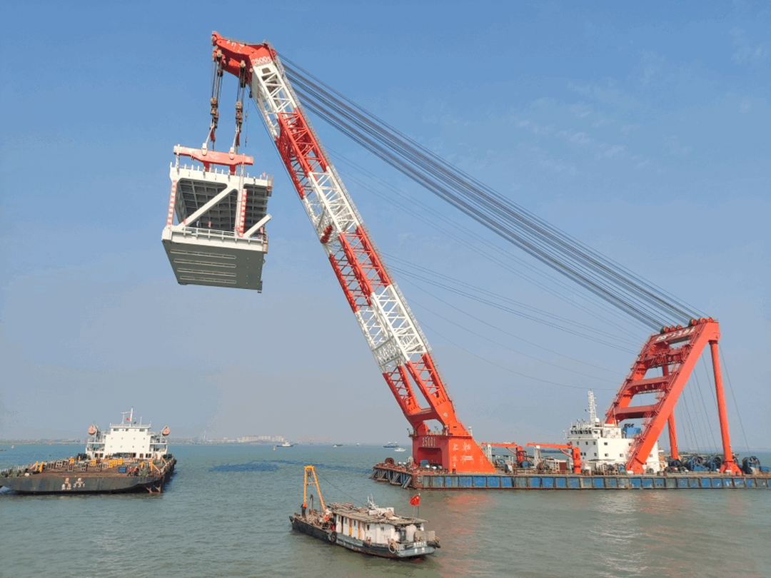 主航道橋首個(gè)1280噸的鋼梁吊裝完成